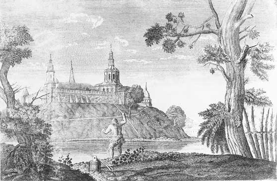 Вид Андроньева монастыря. Гравюра А. Свешникова с оригинала Ф. Кампорези. Конец XVIII века