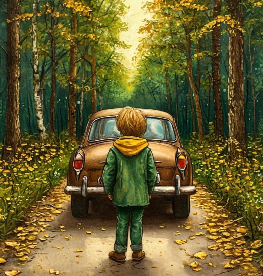 Он не ответил, лишь с интересом наблюдал, как я полез под машину с гаечными ключами. Вдали от населённых пунктов было неожиданно встретить одинокого человека, тем более ребенка. Его вид был опрятен, он выглядел спокойным, а его проницательный взгляд и золотистый шарфик заботливо укрывали короткую шею. Скорее всего, неподалёку находились его родители, так как он не выглядел потерянным. Возможно, они грибники и сейчас выйдут из леса.