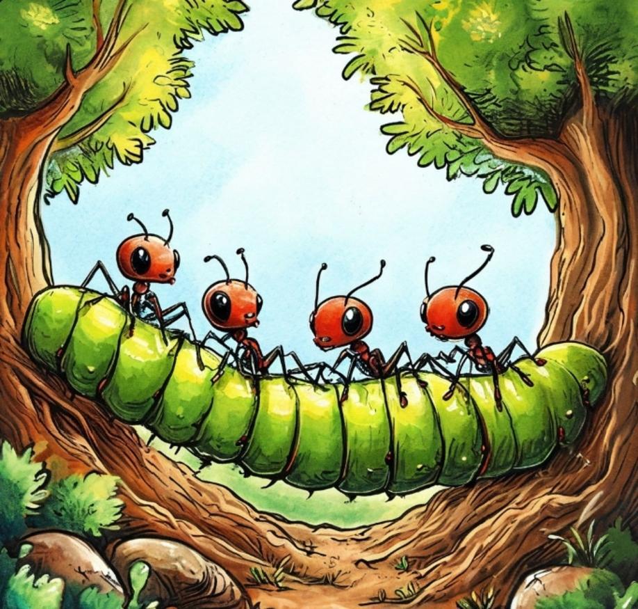 Смеркалось. Я и маленький принц присели на лысое поваленное дерево, чтобы поужинать заранее собранными супругой бутербродами с зелёным чаем. Нас рассмешили муравьи, которые пытались тащить толстую пушистую гусеницу в разные стороны. Они словно две соревнующиеся команды перетягивали её: то в одну, то в другую сторону. Как только передние три муравья уставали или один из них убегал по делам, задняя тройка сразу перехватывала инициативу и бежала с живым трофеем в противоположную сторону. Затем передняя тройка снова набиралась сил и вырывала победу из лап своих товарищей.