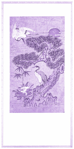Одна из восьми панелей корейской ширмы, XIX в. Журавли являются благоприятными символами долголетия и добродетели.