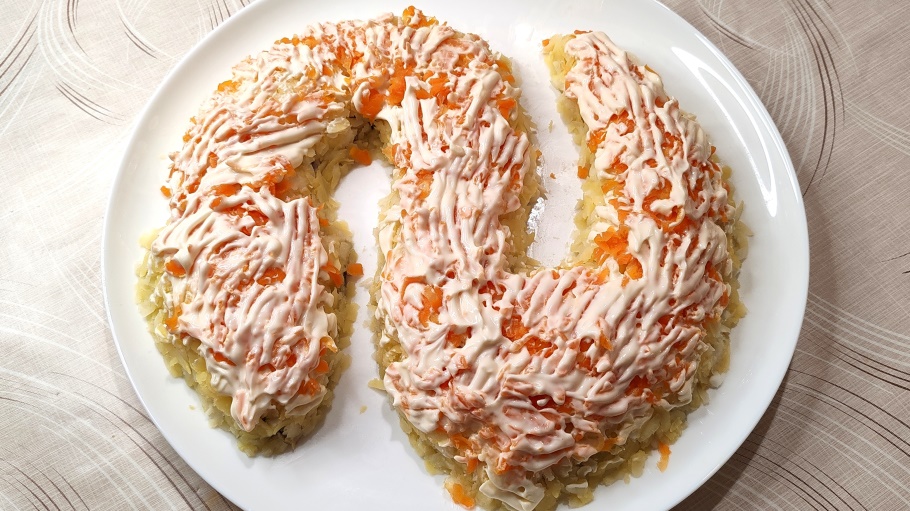 Такое оформление знаменитого салата селёдочки под шубой точно привлечет удачу вашему дому и удивит вашу семью и гостей)