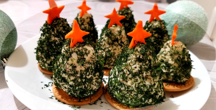 Формируем ёлочки и обваляем их в измельченном укропе.