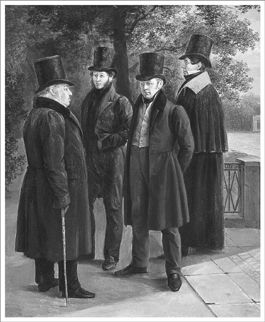 Григорий Чернецов. Крылов, Пушкин, Жуковский и Гнедич в Летнем саду.