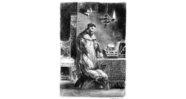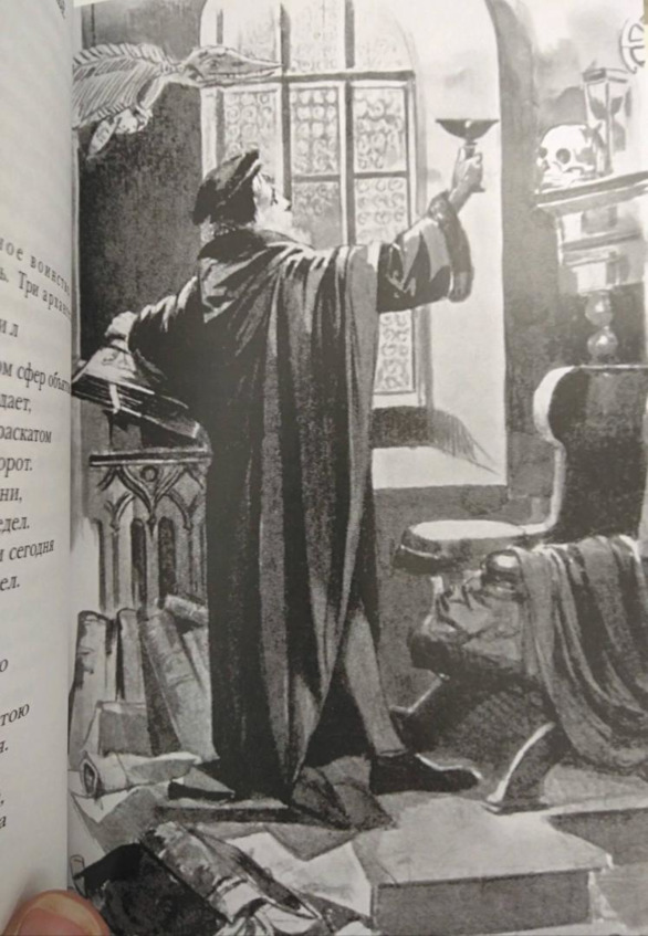 Ночь. В маленькой комнате с высокими готическими сводами, в кресле, за столиком сидит Фауст, чем-то взволнованный.Ф А У С ТКак я усердно грыз гранит науки —И в философии, и в праве, в медицине!К несчастью, также – в богословии.Что я сейчас имею, кроме мукидушевной? Я погряз в рутине,в учености бесплодной, в пустословии.Стою я снова, как тупой баран, от скукиперед вратами в храм науки.И знаю ровно столько, сколько раньше знал,Когда ученье только-только начинал.Зовусь магистром, доктором зовусь.Хожу вперед, назад, туда, сюда, как гусь.Учеников держу в логической неволеУченье – путь к мученью, и не боле!Знать что-то и о чем-то – не одно и то же.Глаз видеть лишь поверхность может,но глубину не видит он.В бессилии рассудок бьется,а сердце на кусочки рвется.Но я осознаю при том,что вислогубые магистры,писаки разные, попы, юристыменя глупее во сто крат.Но почему я этому не рад?Мне не страшны ни черт, ни его ад!Нет угрызений совести и нет сомнений,что я не в силах что-то стоящее знать.Имею ли я право наставлятьдругих, прокладывая к истине проходы?Не нажил я добра, и денег нет – одни расходы.А от людей ни чести, ни почтенияи никакого уважения.Последняя собака сдохла б от такой обиды!Поэтому оставил я научные кульбиты.Прибегнул к магии, решил – повергнуть мирк своим ногам. Без напряженья, как кумир,– открыть секреты мирозданья между делом,увидеть силы, что скрепляют части в целом.Постигну ль я причину превращения,сухого семени в зеленое растенье?Не буду больше я копаться в словесах,витать напрасно в синих небесах!О, полная луна! Свидетельница самоистязаний,моих бесчисленных научных изысканий,вычитыванья истин из бумаг и книг!Настал прозренья миг!Корпеть над книгами я не намерени в силе разума я больше не уверен.Твой мягкий свет меня пленяет.Он яркость под унылость подгоняет.К вершинам гор меня он мáнити воздухом пещер дурманит.Парить хочу я с призраками в небе,являться там, где никогда я не был.Освобожусь я от страданий,не задыхаясь в чаде знаний!Омоюсь утренней росойи стану здравым телом и душой!Увы! я здесь, ещё в темнице.Иль всё мне это сниться?Здесь хламу разного гора.Проклятая и затхлая дыра!Сквозь закопченное оконцесюда не пробивалось солнце.Здесь кучи книг до потолка, довольно редкихжестянки, склянки – скарб умерших предков.И это моя жизнь?Иль только образ жизни?Печаль сжимает сердце как клещами.Не жил – существовал я с мертвыми вещами.Здесь затхлость, чад, и всё вокруг– не Божьего творения продукт!Исследовать скелеты, кости мертвецов,Останки от земных жильцов?О, как мне в этой клетке душно!Скорей бежать на волю нужно!К дыханию природы воротитьсяс энергией естественною слиться.Она животворит пространство вод и суши;и очищает наши души,гоняет ветер и огонь.Все мертвое смывает, разлагает,сдувает; и сжигает вонь.Энергии сфер первозданных,в начале мира Богом данных,объединяют воедино духи.Но почему сердца к ним глухи?В единодушии жить должен человекПознает он теченье рек,причину бурь морских, землетрясенья,движенье звезд и химию горенья.Внимать стихиям духи побуждают.От бесполезных мыслей отвлекают.Волнения души воспринимать,и знаки святости нас учат понимать.В сухой науке нету предсказаний.И знаков нет в бездушном знании.Дверь к истине в нём наглухо закрыта.Вот книга Нострадамуса – она полуоткрыта,все тайное в ней не имеет тайны.Я чувст