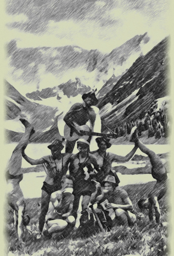 There was something strange about the photograph taken at that moment. Yes, everything looked normal – a cheerful tourist pyramid against the mountains, everyone smiling, Tibo with his guitar at the top. But looking closer, it wasn’t clear exactly how he was staying up there, what he was standing on.
