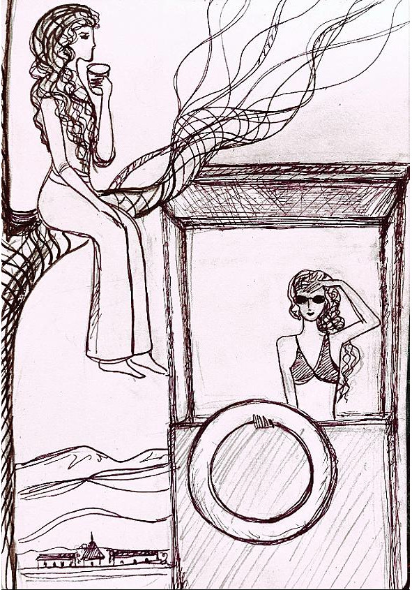 Сегодня день рождения свекрови моей, Инны Александровны (Царствие небесное). И вот, мы с мужем, сидя в кафе «Прага» в Несебре, обсуждали, феномен, что две женщины, проживающие вместе, не могут не начать грызню рано или поздно, в 99% случаев. Напомню, что я прожила в одной общей квартире со свекровью двадцать пять лет. Грызня рано или поздно возникает, это вопрос времени, не советую никому такие эксперименты над собой проводить. Пришли к выводу, что если мужчина борется за самку, то женщина борется за гнездо. Женщины очень боятся, что одна другую вытеснит и выживет. Свекровь боялась, что я её выгоню куда-нибудь, в дом престарелых, например. А я боялась, что меня обратно в общежитие сошлют, хотя у меня уже были дети и хозяйство. Какой-то подсознательный страх идёт ещё из древней памяти первобытнообщинного строя. Вот такая история. Это вопрос времени, когда начнется грызня. Женщины, конечно, могут жить долго и мирно. Мы по восемь месяцев могли мирно жить, но грызня всё равно опять начиналась. Поэтому, конечно, нельзя вместе жить долго в одном пространстве. Обязательно нужны отдельные домики. Но, если уж так произошло, то надо глубоко и серьезно терапевтировать ситуацию. Я сейчас нарисовала портрет дамы, наложила фильтр, и получились из одной дамы – две. Проявилась на этом рисунке какая-то злая собака зубастая, со злыми глазками. Вот такой процесс: получается из двух приличных дам – злая собака. Пространство какие-то подсказки дает. Может, из-за этого происходит много в мире чего-то агрессивно- нехорошего, из-за неразумной организации жизненного пространства.