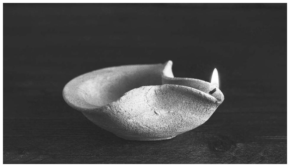Глиняная лампа с хлопковым фитилем, наполненная растительным или очищенным топленым маслом