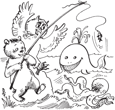 “Hello, Owl,” said Little Bear. “Father Bear is not home. He is fishing on the ocean. But Mother Bear wants a fish now, so I need to catch one.”