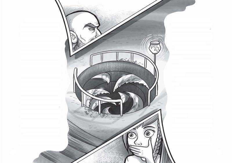И сейчас же пол в этом зале сам собой разъезжается и в самой середине открывается люк – такой широкий, что на автобусе въехать можно. Сразу видно, что это не просто люк, а вход в гигантский подвал. В подвале этом лампочки горят довольно тускло, но видно, что вдоль стен там стоятлюди. Бледные, перепуганные и голые, как в раздевалке перед бассейном. Только на них даже плавок нету. Хорошо ещё, что издалека мало что видно. Девочка покраснела бы, наверно, только ей некогда было краснеть, потому что она уже поняла, что в этом подземелье устроен вовсе не бассейн, а что-то совсем, совсем другое.