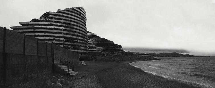 Существует ли «архитектура зла», изначально задуманная как непригодное для жизни пространство, или же все эти жуткие ландшафты – всего лишь результат ошибки, и эти обреченные оставаться необжитыми и недостроенными уродливые здания нужно пожалеть? Среди постоянных «героев» проектов Николя Мулена 2000-х годов есть, например, гигантская пирамида недостроенного в то время отеля в Северной Корее. И пустынные ряды многоэтажных башен, напоминающие советские города 1970-х годов. В одном из интервью Николя Мулен говорил об эмпатии к такого рода монструозным сооружениям. А в 2016 он начал проект Azurasein, принципиально обреченный остаться незавершенным. История недостроенного мегаполиса вдохновлена «Атлантропой» – фантастическим проектом, придуманным в 1920-е годы немецким архитектором и градостроителем Германом Зергелем, предлагавшим объединить Европу и Африку, перегородив плотиной Гибралтарский пролив и соединив дамбой Сицилию и Африку.