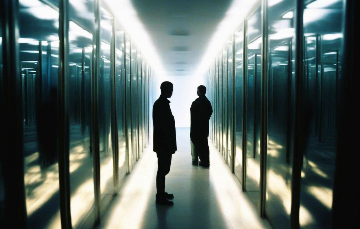 Я сделал второй шаг и поднял голову. На меня смотрел второй я. Слева шевельнулось. Я резко повернул голову, там тоже я, много. Я обернулся. Вижу коридор тел, уходящих вглубь бесконечности. Теперь меня окружили зеркала. Я замечал только себя, куда не посмотрю. В голове засвистел ветер. Всё закружилось. От растерянности я сел на землю. Мои отражения рухнули вместе со мной.