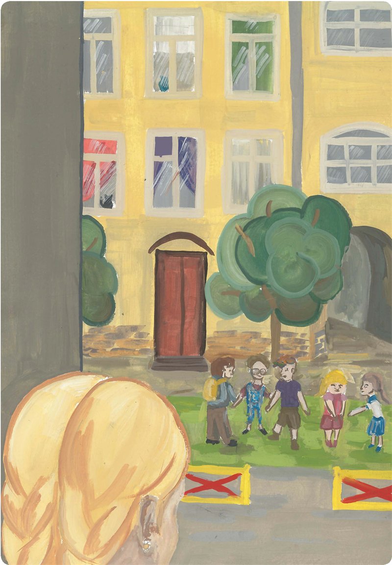 Интересная картинаВзгляд Алёнкин приманила.      Попугать чтоб голубей,  Пробежать пришлось и ей,    Одного схватить хотела,    Да немножко не успела!Вот скамейку присмотрела,    Отдохнуть она присела.   Голуби вокруг кружатся,Рядышком быть не боятся.  Говорят: «Мы гули-гули,Пирожок ждём от бабули».    – Ах вы, хитрые созданья!         Знаю ваши я желанья:Пирожки для вас – приманка,     Денег мне на то не жалко!    И она купить пирогПоспешила со всех ног.   Переулок одолела — Стая галок прилетела,И, пристраиваясь сбоку, Стали обижать сороку.    Знала девочка одно: Всем нельзя на одного!    Показав свою тревогу,Пошла птице на подмогу. Галки мести испугались,Да с дороги все убрались.    Их сменили тут же чайки —        Городские попрошайки.      Сели чайки все напротив,С ними кот дружить не против.Но коту средь птиц не место.  Что же будет? Интересно…      Кот сидел сначала мило  Да хвостом крутил игриво.                Хотел ближе подойти,              Но ему кричат: «Уйди!»           Клюв у чаек очень острый,Взгляд недружественный, злостный.       Выгнув спину боязливо,      Кот попятился трусливо,И прыжком большим, как мог,           Бросился он наутёк!   Дальше следует Алёна,А навстречу ей – ворона.Низенько над ней летела,    Чуть на голову не селаДа кричала громко: «Каррр!»,      Будто где-то есть пожар.     Очень важная персона —      Впору ей была б корона! Смотрит девочка Алёна   На ворону удивлённо,Знает, что вороний голос Улетает прямо в космос.Вдруг откуда ни возьмись     Стая полетела ввысь!   И считать неторопливо    Стала девочка лениво:  «Раз ворона, два и три…»       Тут меняются ряды.Не заметишь сразу даже — Портит счёт одна и та же.Каждый раз, начав сначала,     Девочка ворон считала.       Ну а время-то бежит,   Птиц быстрей оно летит.Солнце уж в глаза слепит —    Поднялось оно в зенит.  Словно солнечный софит,   Лист над головой висит.Видом лист своим дурачит,   Солнце за собою прячет.       А зелёные прожилки     Показали ей картинки.Над листом она хохочет,  Уходить пока не хочет.Рядом с деревом вблизи  Незаметно шли часы…  Видит девочка мальчишку,А за ним бежит вприпрыжку      Замечательный щенок,         Он породою бульдог.Вот бы ей найти предлог Поиграть и с ним чуток,    На коленки бы упала    Да за ухо потрепала!Ел мальчишечка со смаком   Булку мягкую и с маком.   Этот мальчик сразу смог  Ей напомнить про пирог.  Но на улице стемнело,  Пока девочка глазела.     И Алёне невдомёк,Где же взять ещё часок?  Удивляешься чему-то, Отвлекаясь на минуту,    А на деле всё не так,Время – это враг зевак!День и ночь играют в прятки —    Пробежал день без оглядки.          Ему прятаться пора —         Ночь берёт свои права.Солнышко за гору село,      Облако его задело.Долгожданный магазинДверь Алёне не открыл.Он закрылся ровно в срок,     На двери висит замок.  Все решили, что Алёна —        Настоящая ворона!     Вот такая неудача… Идёт девочка и плачет.Помешала проза жизни   Озорной её харизме.            Но обиднее всего:     Ей другой стать нелегко!«Ты ворона!» – мама скажет,          Поругает и накажет.     Возле утреннего чаяЖдёт тарелочка пустая…   Вот идёт она и плачет,Да пустую сумку прячет,  Представляет, как ей домаБудет очень стыдно снова…       В