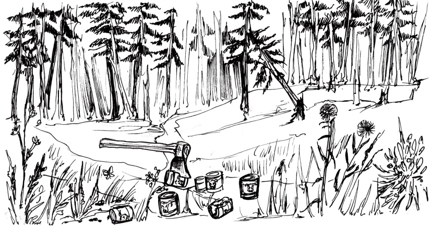 Ролевики уже поставили четыре палатки и «застолбили» место для остальных, отгородив его натянутой меж деревьев трассировочной лентой. В центре лагеря горел костёр. Над огнём, на поперечной палке, лежащей на рогулинах, висел котелок, в котором кипела вода.