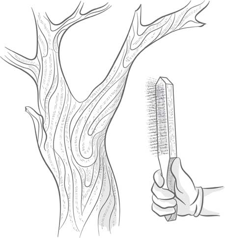Зачищать кору нужно осторожно – в этом деле довольно легко перестараться и навредить дереву.