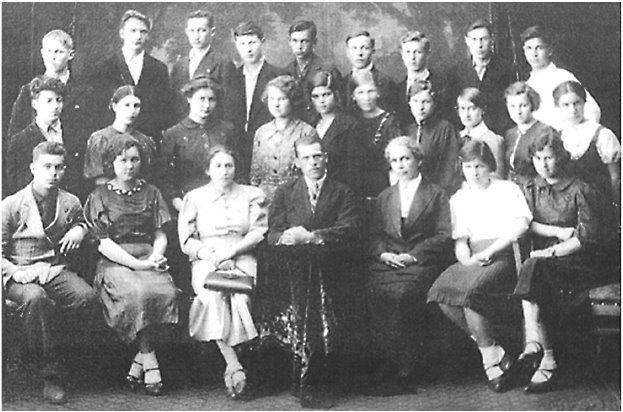 Выпускной класс школы № 16 (Н. А. Зайцев – в верхнем ряду, справа. 1940 г.