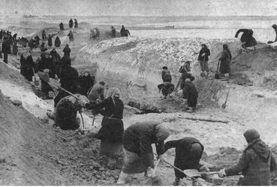 Ежедневно, еще на рассвете, по замерзшей Оке мы с Колей шагали к месту работы: кувалдами с помощью металлических клиньев долбили промерзшую землю – опять копали противотанковые рвы и строили ДЗОТы. Зима в 1941 году наступила рано, а морозы достигали 40 градусов. Условия труда и быта «на окопах» были тяжелые.