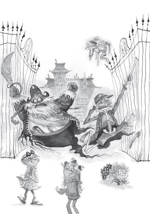 – Как приятно вас видеть! – воскликнул Тутонкартон, наконец их заметив: он как раз поставил на место глаза и нос, слегка пострадавшие от выстрела (только не пугайтесь, напомню вам, что с призраками такое происходит сплошь и рядом). – Полноги, у тебя такой странный вид. Всё хорошо?