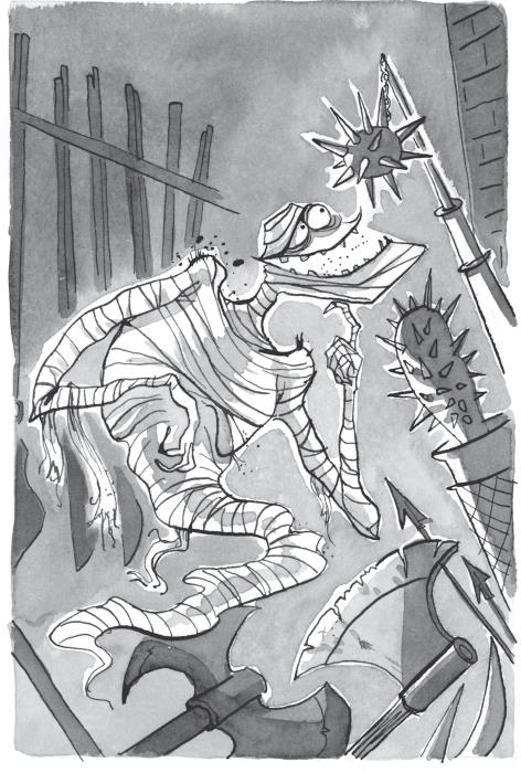Когда Тутонкартон выстрелил из ружья себе между глаз, это его, конечно, не убило: в том-то и преимущество призраков, что им, в общем-то, нечего бояться. А такому рассеянному субъекту, как Тутонкартон, превращение в привидение вообще пошло на пользу, потому что он смертельно ранил себя минимум раз в день. Его приятели поднялись к нему в оружейную комнату. Полноги вздрогнул: огнестрельное оружие всегда его пугало, даже после того как он умер.