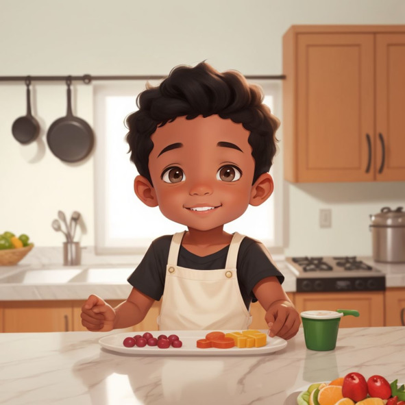 Jayden washed his hands and put on a small apron. His mom showed him all the ingredients they would need. There was flour, sugar, eggs, and butter. Jayden looked at the recipe book with big eyes. He couldn’t wait to start mixing everything together. His mom handed him a big bowl and a wooden spoon.