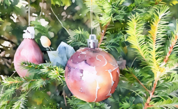 Сюжетом для открыток могут быть птички на веточке, композиции с ёлочными украшениями, подарками, а также чайная пара со сладостями или небольшой свечной фонарик с фруктами. Идей существует множество.