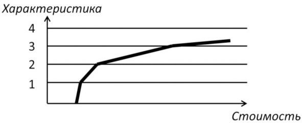 Следует принимать во внимание, что каждое конкретное решение имеет свою «стоимость» в части объема затрат на реализацию. Схематично можно выделить четыре фазы зависимости «характеристика – ресурсы» (рис. 10). Здесь под стоимостью понимаются затраты любого ресурса (не только финансового).