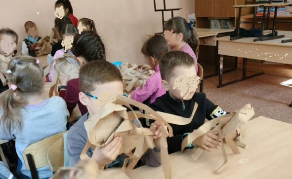 Урок с бумажными заплетёнками проходил в школе номер 10 города Кыштыма. Это был где-то 2 или 3 класс, деткам очень понравилось. Ждём от вас приглашения ещё на уроки. Мы готовы вам предоставить расходный материал. Можно заплетёнки!