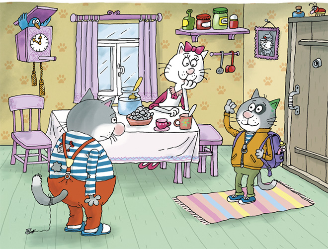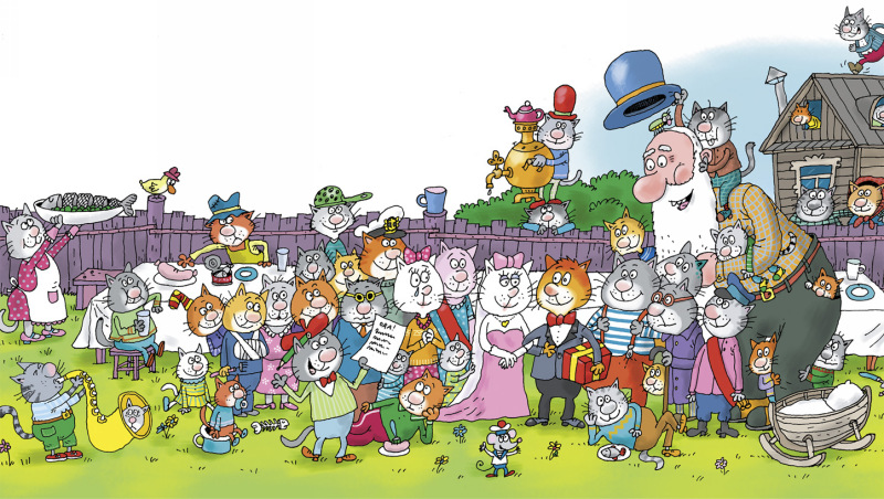 Всё прошло очень скромно, никого из посторонних не было, только свои: сорок деревенских котов и дед Степан Мороз. Старик подарил молодым люльку-качалку в виде лодочки. А поэт Васькин написал поздравление в стихах: