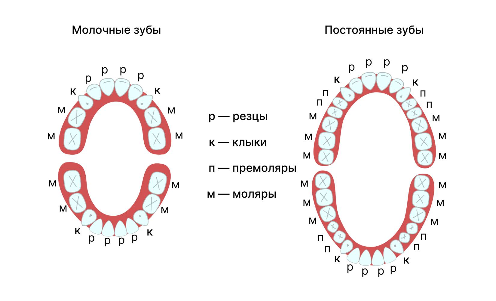 Строение зубов простым языкомЗубы – это твердые образования в полости рта, которые помогают жевать пищу и участвуют в формировании речи. У каждого человека есть два набора зубов: молочные (временные) и постоянные.