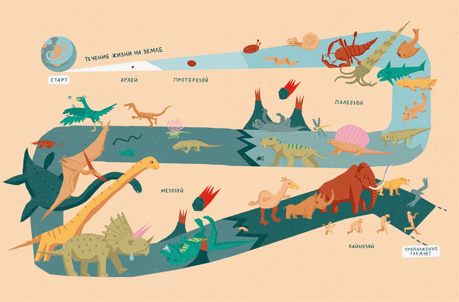 Ни на что больше я смотреть не мог, мой взгляд был прикован к зелёному глазу хищного динозавра. С тех пор я заболел «каменной болезнью» – так называют увлечение палеонтологией. Ходил в кружок юных геологов, по уши в грязи стоял на скользком обрыве и выколачивал молотком из известняка окаменелые ракушки. Спустя годы стал писать книги про историю жизни и до сих пор каждое лето отправляюсь на раскопки: выкапывать хрупкие, как печенье, рёбра динозавров, искать зубы древних амфибий или спиральные раковины аммонитов.