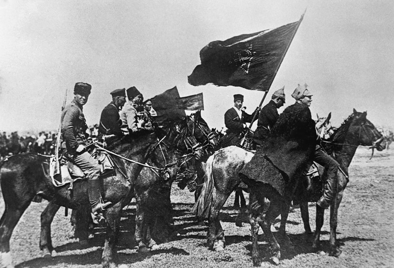 Бойцы 1-й Конной армии на митинге по случаю вручения им Почетного революционного Красного Знамени ВЦИК, начало 1920-х годов[2]