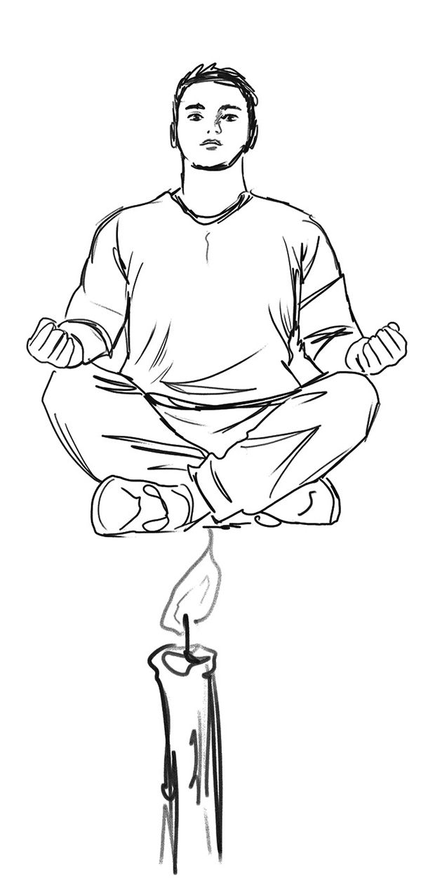 Итак, это простая, но очень мощная техника: нужно выбрать предмет для созерцания – очень хорошо, если этот предмет является источником света: огонь свечи или свет лампы – и смотреть на него, не отрываясь, до состояния легкого «залипания». Мозг при этом словно начинает отпускать мысли одну за одной. На первых порах будет сложно – мысли полезут, это нормально. Главное, не сопротивляться им, а просто снова возвращать внимание к объекту.