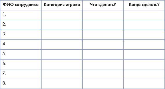 Самая сложная задача – поднять игроков из группы С. К сожалению, вернуть горящие глаза достаточно сложно, когда человек негативно относится к инициативам компании и ее продуктам, когда это B–. Если руководитель все же видит потенциал работника и считает, что его можно вернуть в команду, то проблему нужно проговорить с ним лично, постараться выяснить причины низких результатов и отсутствия должной вовлеченности, обсудить возможные выходы из ситуации. И если огонек внутри человека все еще тлеет, то потребуется искра, чтобы вновь его разжечь. Стратегия руководителя будет заключаться в том, чтобы сначала поднять С-игрока до уровня B+, а потом вести его на вершину А. Можно организовать обучение или тренинг, где человек научится позитивно относиться к сложным ситуациям, можно сделать ставку на наставничество со стороны А-игрока, который попробует расшевелить энтузиазм коллеги, заразив его своей энергией… Но если время идет, а принятые меры не помогают обнаружить скрытые резервы, то с C-игроком нужно прощаться. Особенно безнадежны ситуации, когда игрок опустился на С с уровня B–. Возвращать его в прежнюю парадигму результативного недовольства будет малоэффективно. Здесь руководитель должен быть достаточно жестким, чтобы объяснить, что лояльность будет ключевым условием продолжения работы в команде.