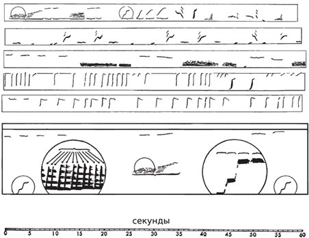 В документах я нашел еще кое-что интересное. Записи звукового ряда: странные линии и закорючки с разметкой в духе нотной грамоты.