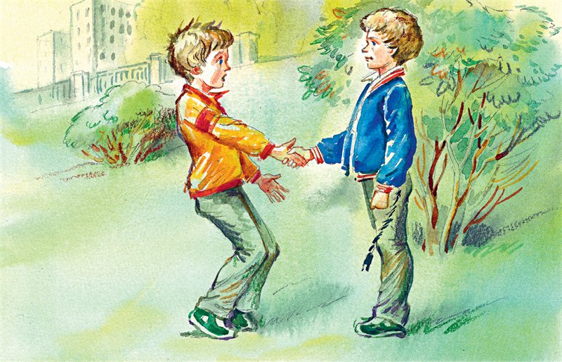 Нет, совсем незнакомый! Это был кто-то чужой. Но этот «кто-то» был вылитый Сыроежкин. Сергей посмотрел на него широко открытыми глазами, и ему показалось, что это он сам вылез сейчас из куста и дивится на забияку, дернувшего его за куртку. А мальчик в синей куртке, живой двойник Сережки, тоже замер и смотрел в глаза Сыроежкину. На лице его ничего не отражалось – ни удивления, ни улыбки. Оно было совершенно спокойным.
