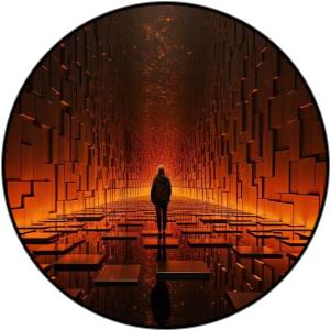Сначала всё исчезло, осталась только пустота, со всех сторон начали появляться платформы создавая стены и пол, они быстро двигались, изменяя и превращая пустоту в комнату. Четверо безликих смотрели по сторонам, быстро вращая головами, теперь виден их истинный облик, это были роботы, не те неповоротливые медленные создания, а настоящие воины, с загруженными боевыми программами. Тела из матового металла, очень похожего на пластик, но прочность этого соединения превышала все известные сплавы. Овальные маски с трубками сзади, напоминающими афро косички, меняли форму, периодически проявляя рандомные лица. Едва заметная энергетическая сеть, в форме сот, покрывала тела и переливалась. У каждого в руках оружие: у трёх особей мужского пола изогнутые мечи, а у рыжей два коротких ножа. Они приняли стойки, согнув колени и плавно покачивались.