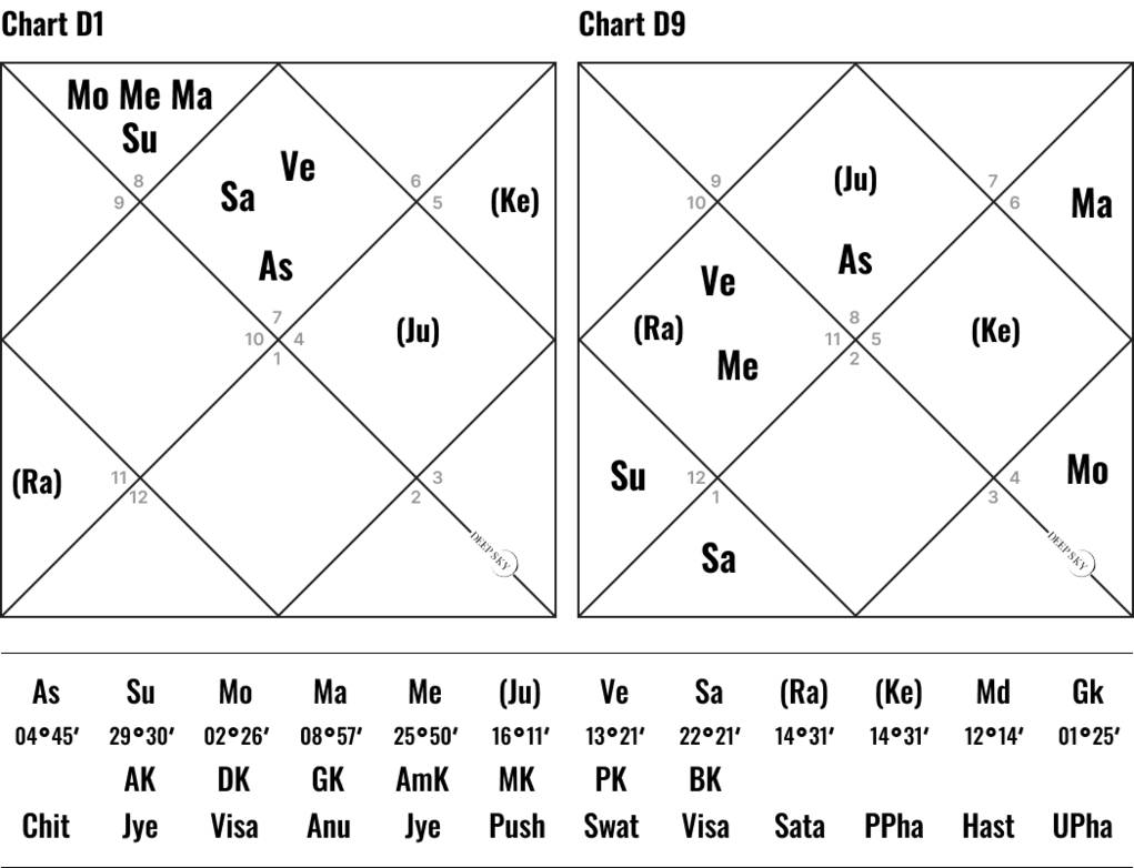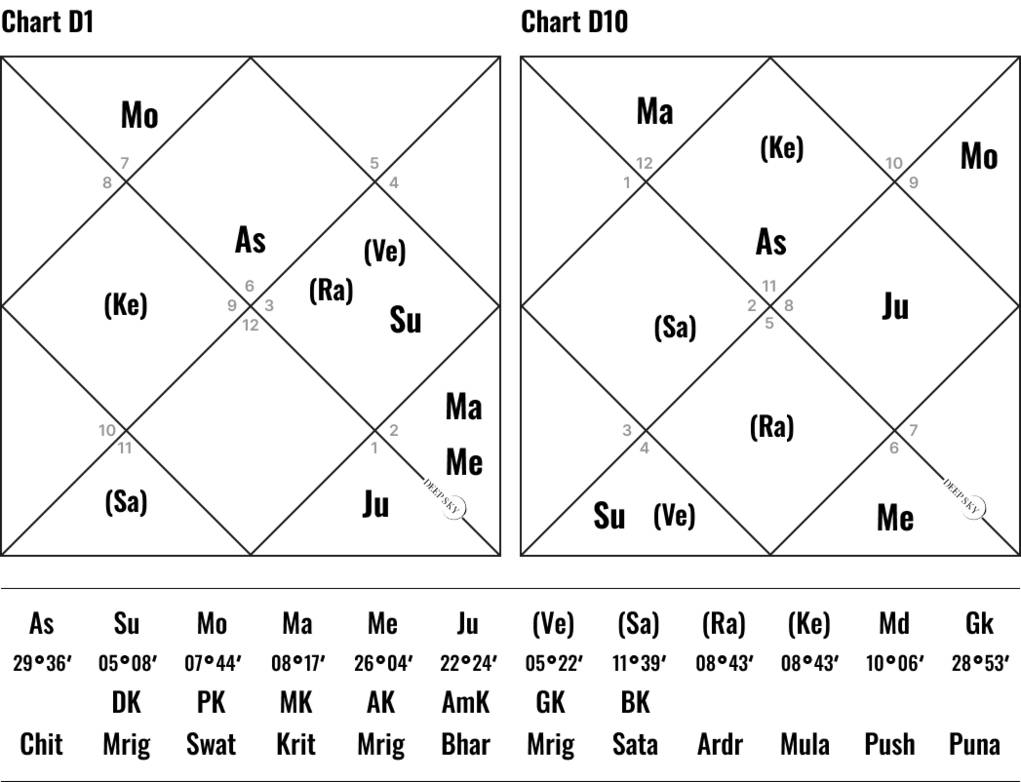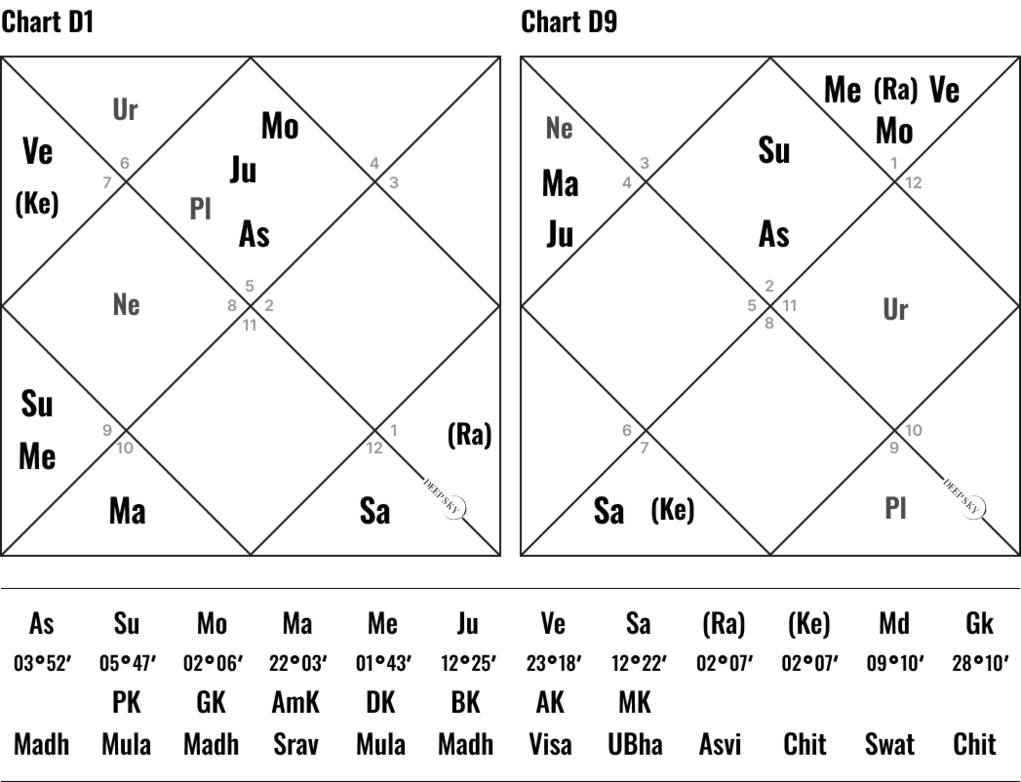 Ярким примером такого гороскопа можно назвать бывшего премьер – министра Великобритании Бориса Джонсона, который имеет Асцендент в 29 градусах 36 минутах Девы. Когда политик родился, на Востоке восходила звезда Спика, а накшатра Читра была отправной точкой всего гороскопа.