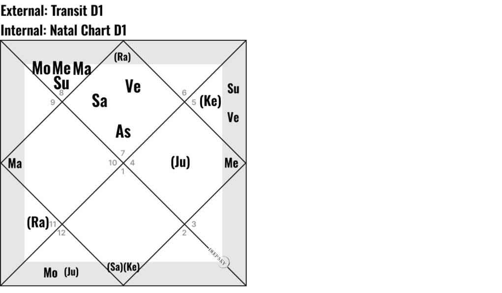 Седьмой дом международных отношений был поражен транзитными Сатурном и Кету. Это два наихудших вредителя среди всех планет гороскопа, и в первые недели после начала войны, оба они влияли на седьмой дом короля Великобритании.