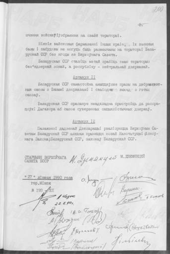 Сейчас я хочу рассказать вам о том, как я искала дату подписания Декларации об отсоединении БССР от Советского Союза. Вот, кстати, последний лист этого документа: