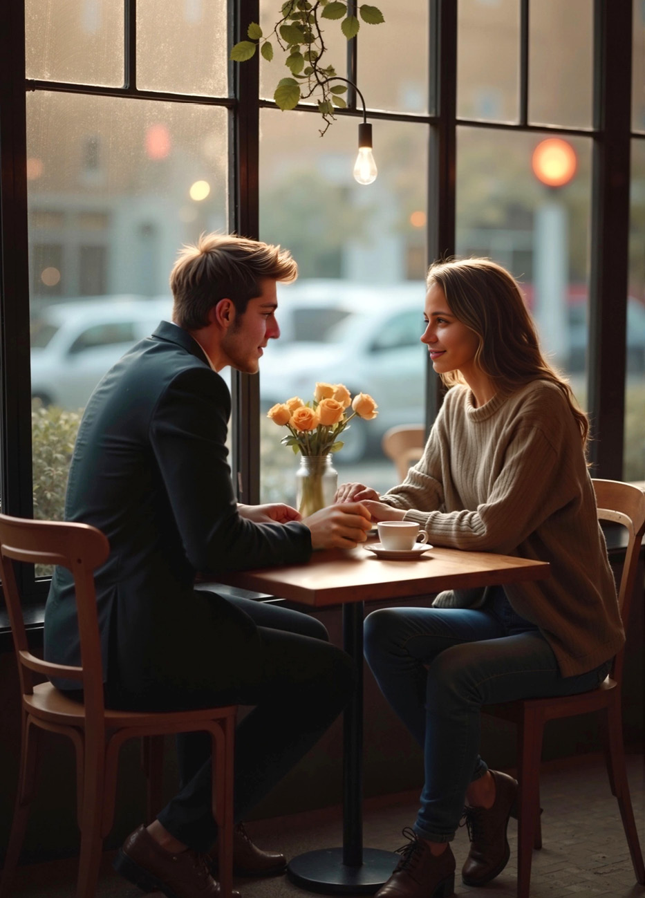 Когда они вошли в кафе, аромат свежесваренного кофе окутал их окунув в уютную, спокойную атмос-феру. Вальтер выбрал столик у окна, откуда откры-вался просторный вид на оживленную улицу. Аля се-ла напротив, стараясь не встречаться с ним взглядом, но чувствуя, как его присутствие заполняет всё про-странство вокруг, начала всматриваться в его глаза наполненной добротой