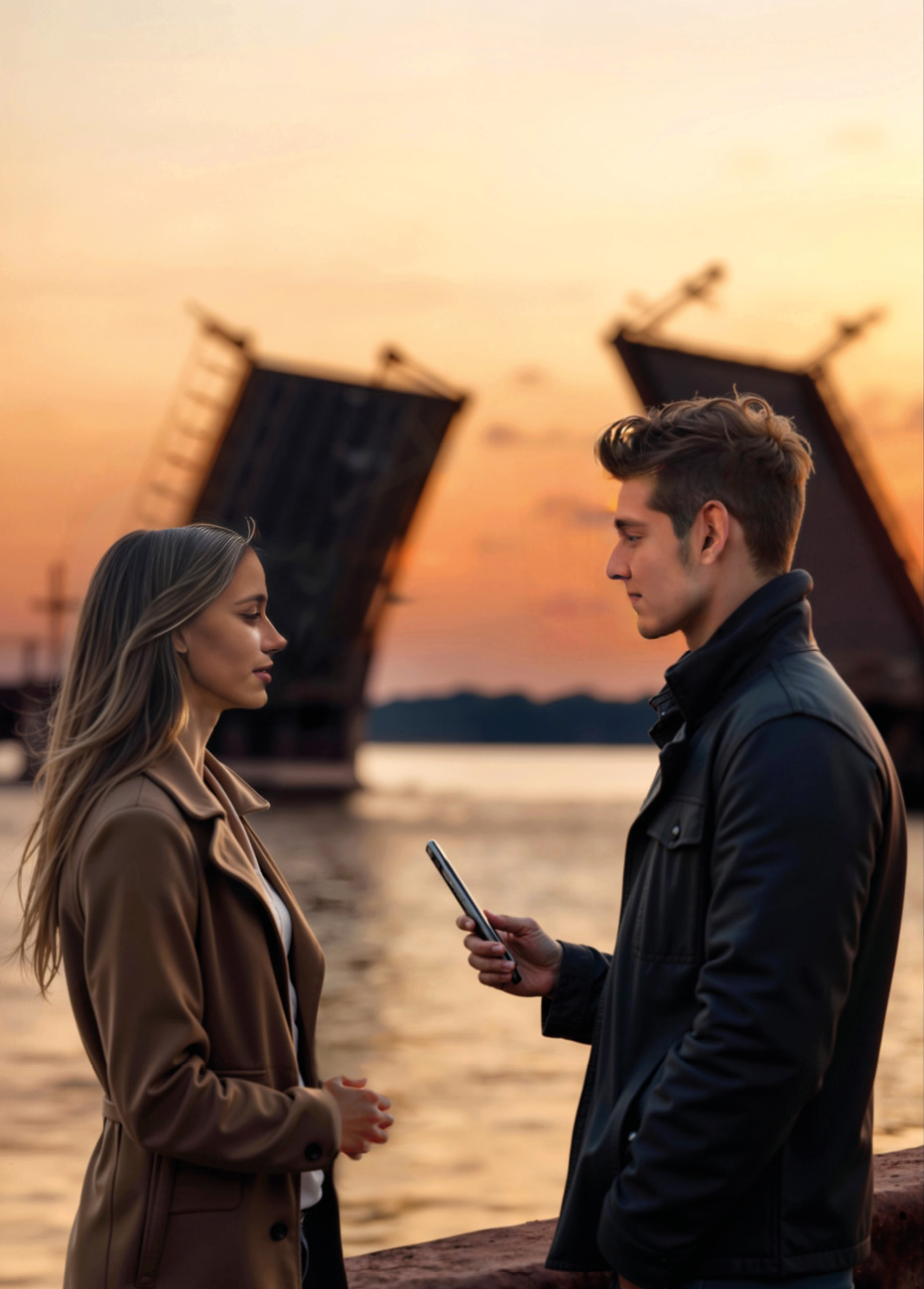 Вальтер наклонился к ней, его губы почти косну-лись её губ. Но вдруг раздался звонок телефона. Аля вздрогнула, и момент близости исчез. Вальтер от-странился, но его взгляд остался напряженным.