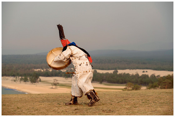 Шаман камлает на острове Ольхон, озеро Байкал.