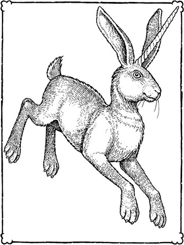 Заяц с золотым рогом во лбу. Создание ослепительной красоты. У него длинные, розовые изнутри уши. Во время брачного сезона из земли, по которой прошел аль-мирадж, пробиваются зеленые побеги. Они могут полностью покрыть бесплодное поле всего за один час. Говорят, что аль-мирадж добровольно подойдет только к тому, кто обладает доблестью, мудростью и силой. Королева Ариан из Литии однажды решила подарить аль-мираджа своему жениху. Она увидела, как магический зверь отвернулся от ее избранника, но радостно приветствовал слугу. Тогда она вышла замуж за этого слугу. Они жили долго и счастливо, а в саду у них было полно золоторогих зайцев.