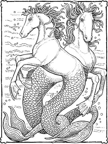 Настоящие морские кони. Они живут стадами по десять – двадцать особей; самец крупнее самки, но самка более подвижная и быстрая. Цвет их кожи варьируется от изумрудно-зеленого до серого, а на северо-западе – до ярко-розового и кораллового. Некоторые из них приручены нереидами, которые могут ездить на них верхом. По закону все лодки на Архипелаге должны курсировать по ветру или солнцу, чтобы вода оставалась чистой, а молодые гиппокампы (известные как ипполины) могли вырасти и достигнуть расцвета своей выдающейся красоты.