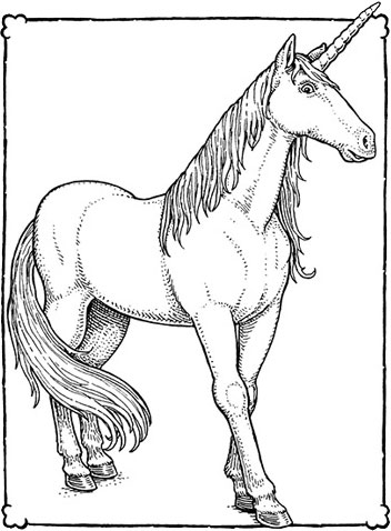 Когда единороги рождаются, они имеют окрас цвета чистого золота, на втором году жизни становятся серебряными, а белыми – на четвертом. Предпочитают лесистую местность с мягким дерном. Если их не беспокоить, могут прожить более трехсот лет. Единороги благополучно живут, питаясь простой травой и кустарниками, но предпочитают лимонник, тимьян и особенно мяту. Их дыхание наделяет человека мужеством. Пучок волоса из хвоста или гривы единорога излечивает смертельно опасные раны. Также утверждают, что единороги появляются на полях сражений, чтобы вдохнуть жизнь в павших. На протяжении истории были случаи, когда люди ездили верхом на единорогах, но подобное случалось крайне редко. Большинство тех, кто попробовал оседлать единорога, обнаруживали себя довольно вежливо и бережно втоптанными в землю.