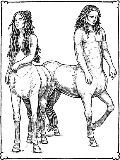 У кентавров тело лошади, а торс и голова человека. Чтобы поддерживать потребности тела и мощного мозга, им приходится есть десять раз в день. Поэтому, хотя они искусные мастера и владеют самыми разными ремеслами, именно еда является основой бо́льшей части культуры кентавров. Неудивительно, что они величайшие кулинары. Пиры кентавров проходят каждое полнолуние при свете луны. На этих пирах подают лесные плоды, сложенные в горы высотой три фута, и крепкие напитки из мелких плодов яблонь кребов. Пиршество длится всю ночь, а порой продолжается и на следующий день.
