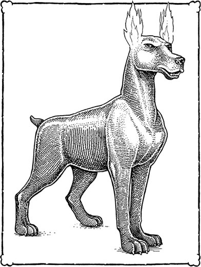 Черное существо, похожее на собаку какой-то неведомой породы, с зубами длиной с его руку и когтями, которыми легко можно разодрать в щепки ствол дуба.