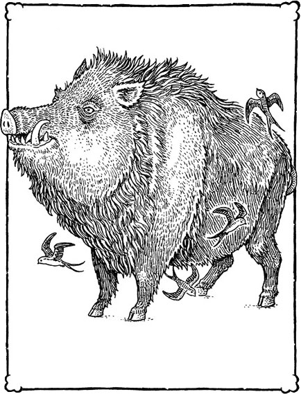 Иссиня-черный кабан, на котором, по преданию, когда-то ездил король Артур. Его шерсть в лунном свете переливается всеми цветами радуги. Может вырасти размером с носорога и способен раздавить всякого, кто напугает или разозлит его, но при этом ласков и добр с детьми. Известно, что он готов укрыть их под брюхом во время дождя. Турх труйт будет насмерть сражаться за тех, кого любит. Бывает неловок на суше, но грациозен в воде и способен вплавь обогнуть весь Архипелаг, не останавливаясь ни на минуту.