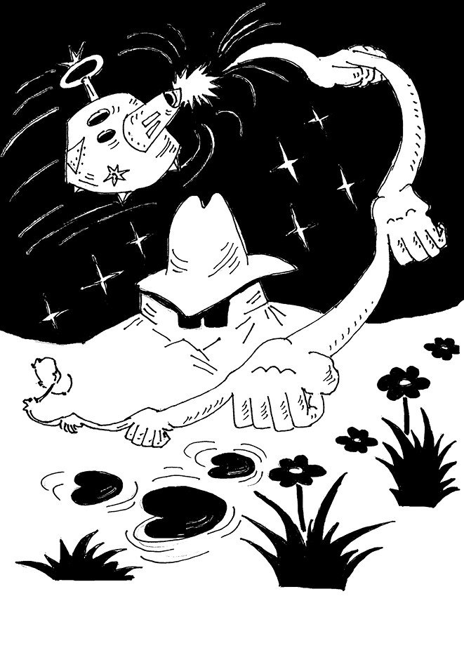 А вообще космос большой, гораздо больше и важнее какой-то Нобелевской премии, хоть она и включает в себя миллион или два американских денег. Он такой большой, что больше него уже ничего и быть не может. Он даже такой большой, что некоторые думают, будто никак не получится пролететь его за всю жизнь. Даже если будешь лететь во всю прыть. Говорят, что даже если ты сядешь в ракету маленьким мальчиком, то пока летишь по космосу, успеешь подрасти и даже повзрослеть. Потом – всё ещё пока летишь – познакомишься с девушкой, жениться на ней и даже станешь совсем взрослым, очкастым дядечкой. А твоя девушка – всё ещё пока вы вместе летите – станет тётей. У вас даже родятся детишки. И всё это, представь, пока вы летите вперёд, по космосу. Потом, вы с девушкой-тётей станете седыми и сутулыми, а ваши детишки вымахают в дядей с тётями. И представьте, вы всё ещё будете лететь по космосу по прямой, а ваши детишки родят вам внучат. Хуже того, космос всё ещё не кончится, когда у ваших родившихся когда-то внучат, родятся свои собственные дети и внучата. А вы всё ещё будете лететь. И представьте, до края космоса вы всё ещё не долетите. Воистину этот космос он очень-очень большой, и поэтому будет наверняка правильным называть его не просто космосом, а космосом с большой буквы, то есть, Космосом. Пожалуй, так мы и будем делать всегда дальше в нашем новом рассказе.
