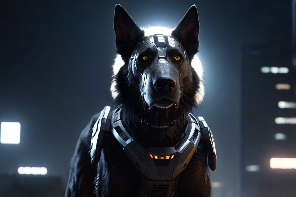 Собака смотрит. Огромная. Свет резко обрисовывает сочленения влажной чёрной брони, плешивые пятна на носу и красный глаз камеры на шлеме – повыше её собственных.