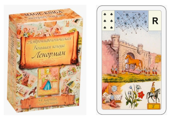 Некоторые колоды содержат дополнительные карты или элементы для более глубокого понимания раскладов. Эти колоды могут предложить расширенные интерпретации или дополнительные символы, которые помогают более точно анализировать ситуации. Самая известная «Астромифологическая Большая колода Ленорман». С классической колодой, кроме имени Ленорман, данная колода не имеет ничего общего. По работе с этой колодой надо проходить отдельное специальное обучение. Лично я изучила эту колоду спустя 5 лет после знакомства с классической колодой. Категорически не рекомендую начинать с этих красивых и завораживающих карт.
